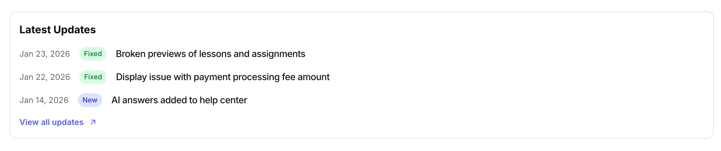 New: Product updates added to your dashboard